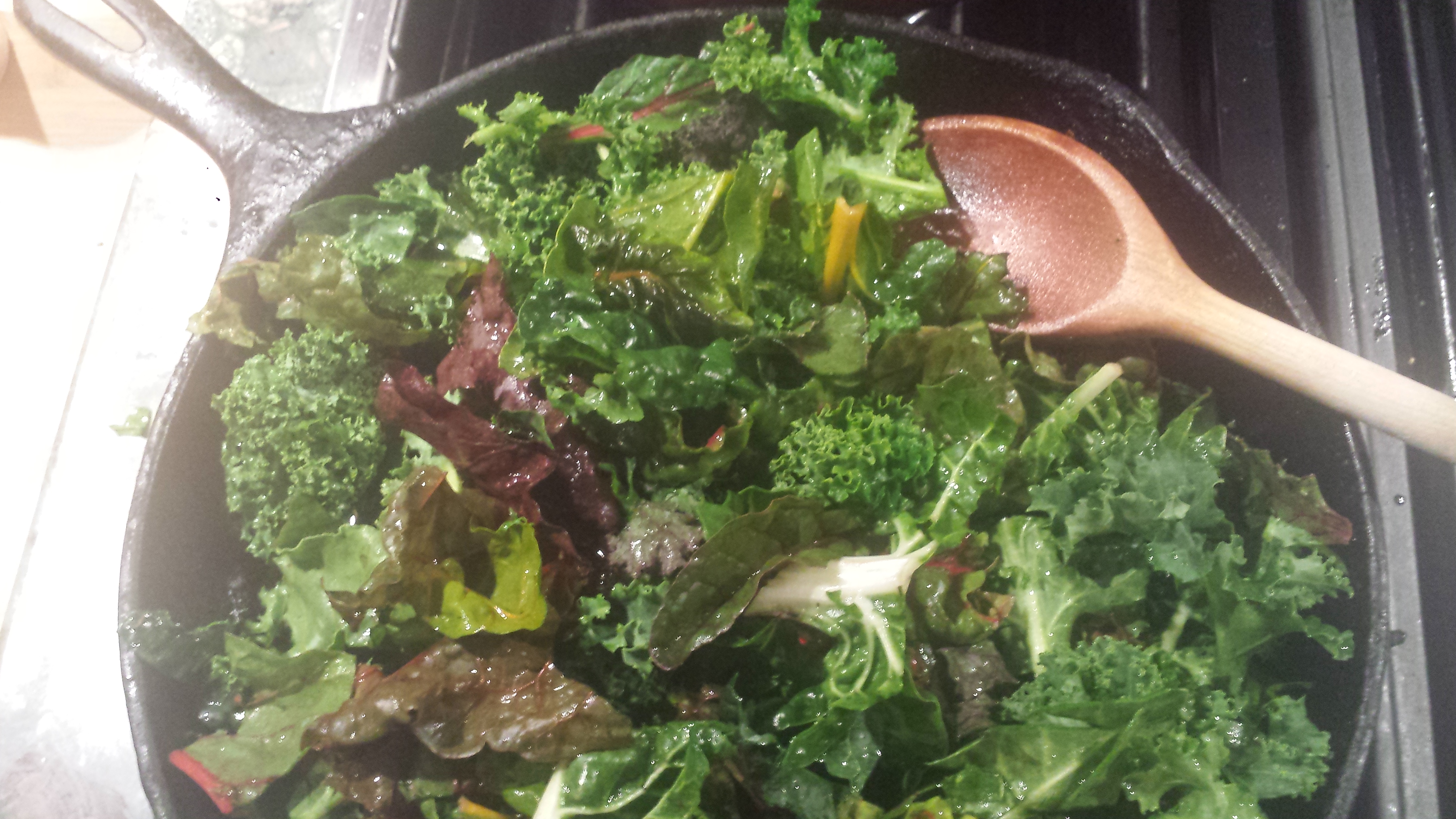 4-6 cups mixed greens (chard, kale, etc), chopped and rinsed
