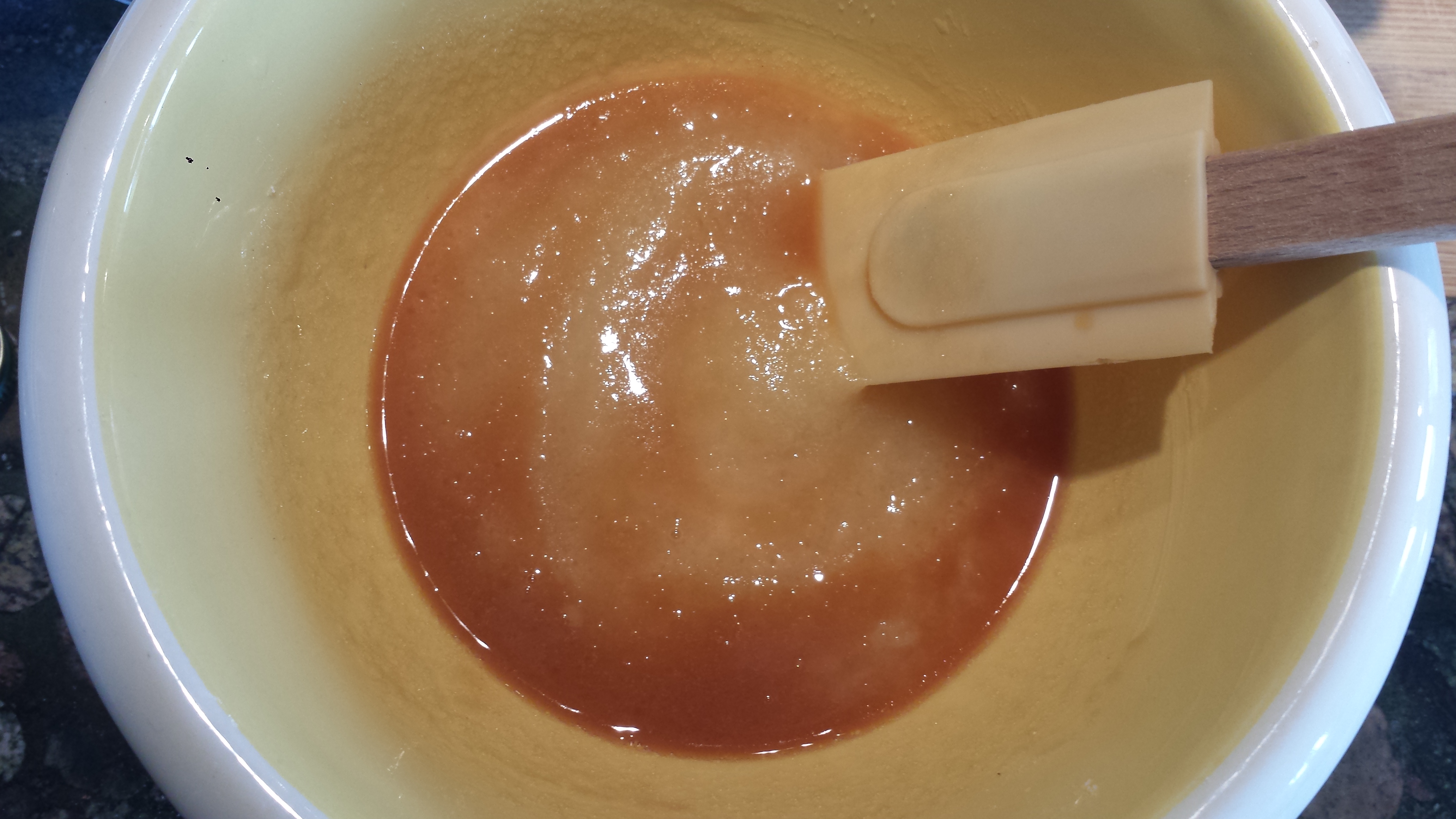 • Pour mixture over the top of the pears, coating them evenly.