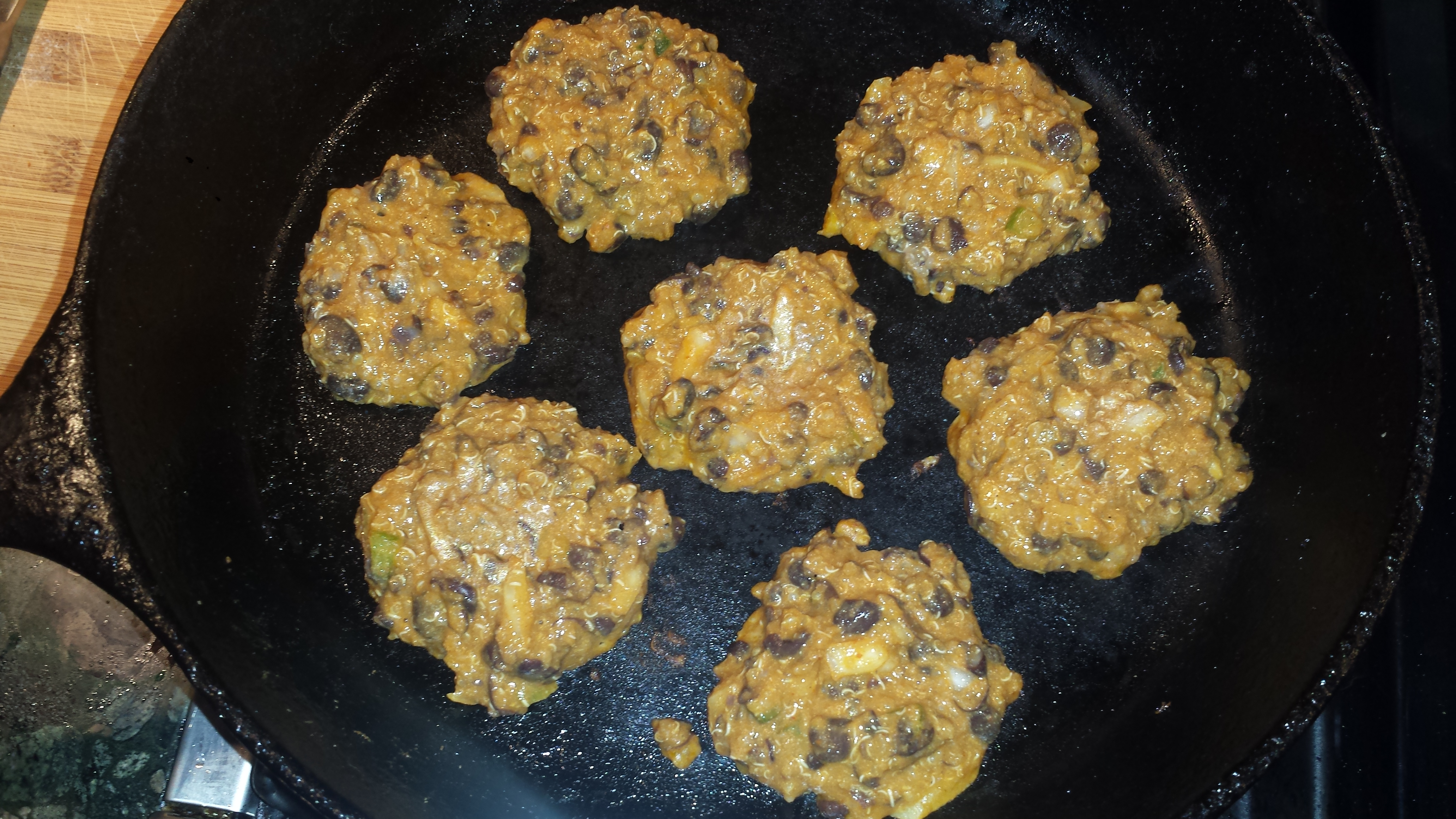 - Using a brush or spoon, spread olive oil onto the surfaces of the patties. Cook black bean patties on a grill set at medium heat or pan fry in a heavy pan.