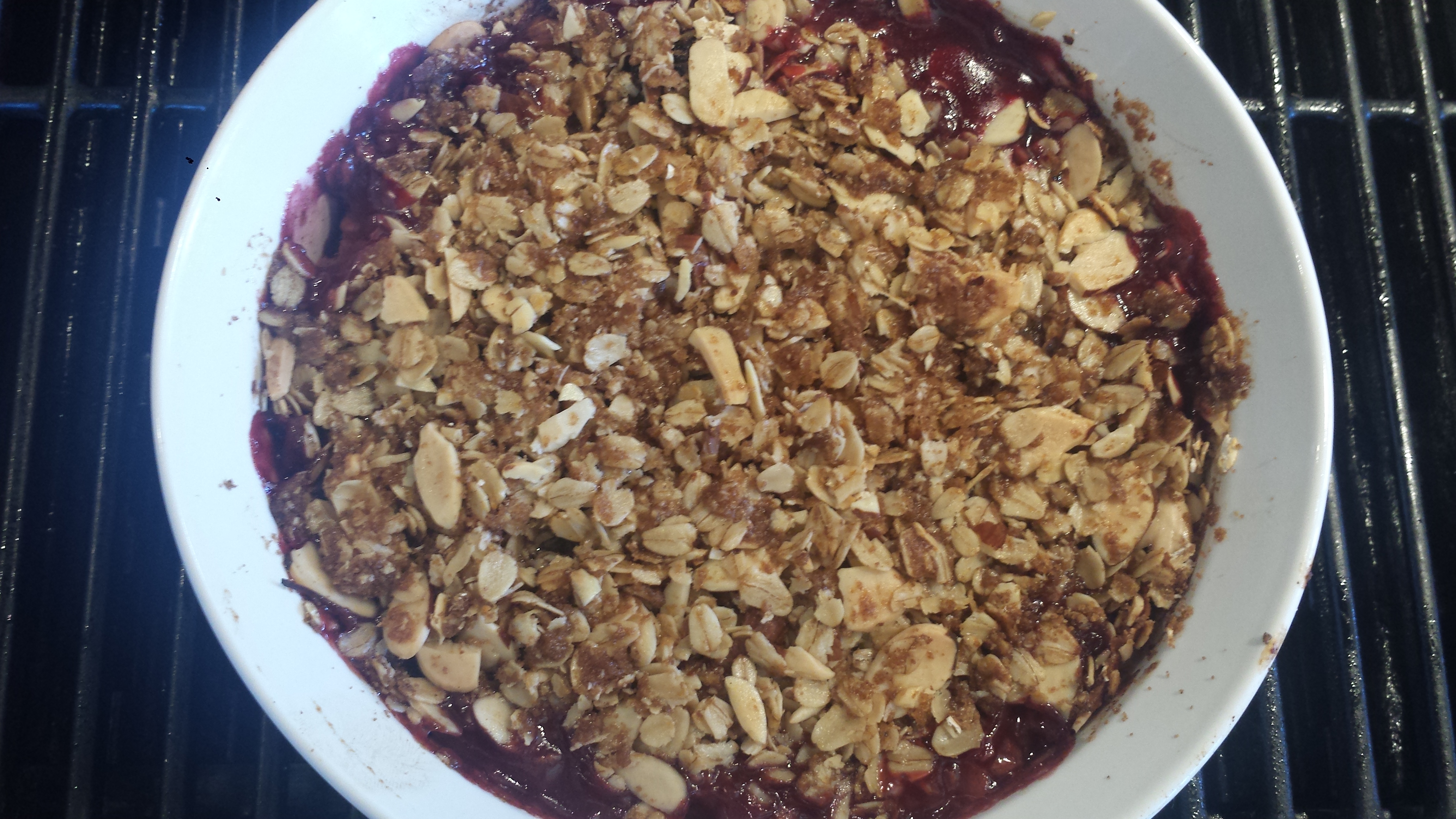 I’ve been home on my own for the past week and have succumbed to the temptation to eat dessert for breakfast. I mean who wouldn’t, given the choice of a regular breakfast or a lovely fruit crisp warm from the oven? My husband and three sons are scattered to the edges of the country. One son is beginning law school, another taking an experiential year and the third, recently engaged and ensconced in the working world. So my job is done NOT , rather my day to day job as a Mom has greatly diminished. My day began with a kitchen that smells like heaven. When I walked out to the street with my dog to get my newspapers and then walked back into the house, mmmm! Even if I didn’t eat a bite – worth it.