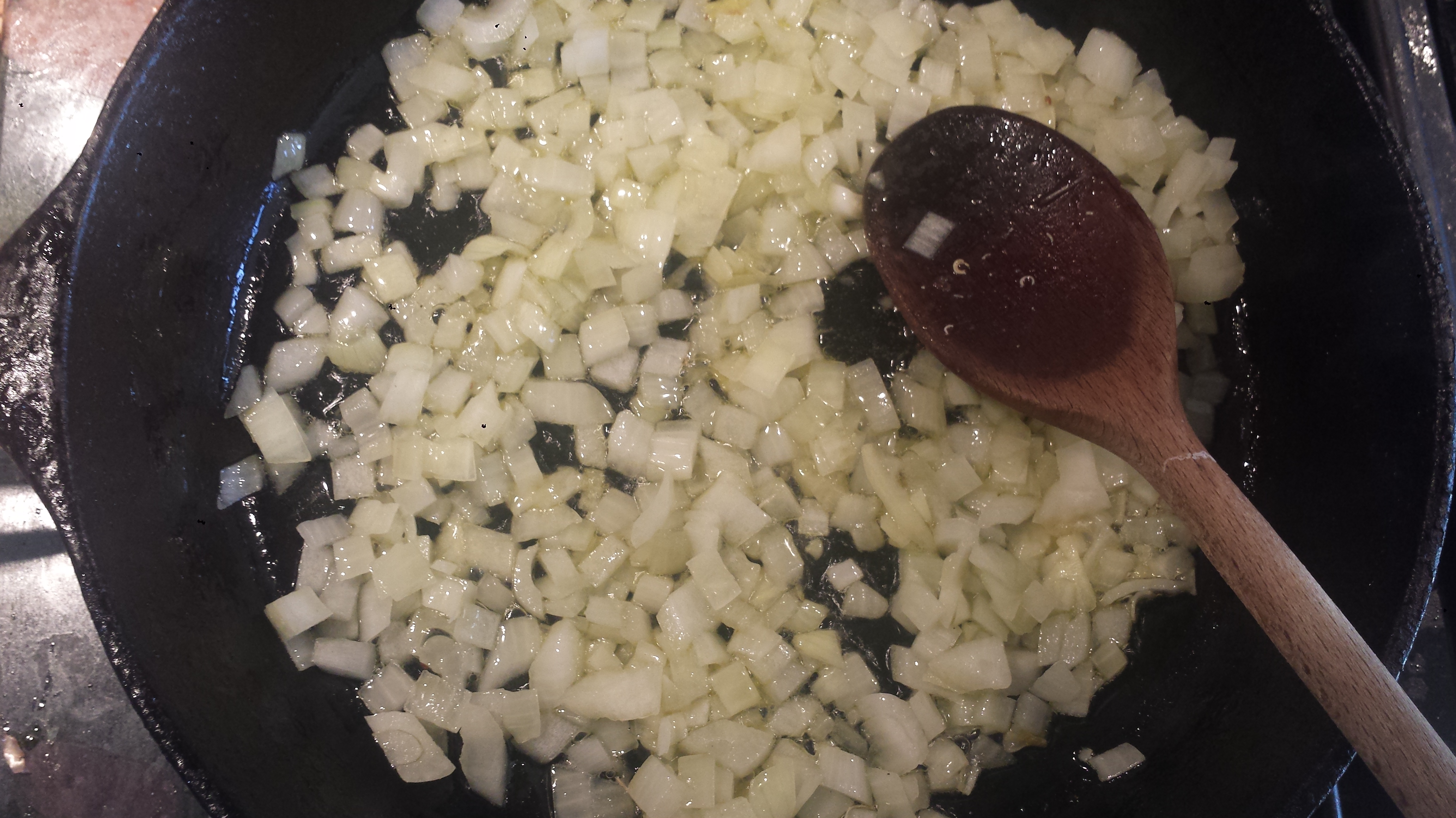 • Saute onion in olive oil over medium high heat until golden and tender, 3-5 minutes.