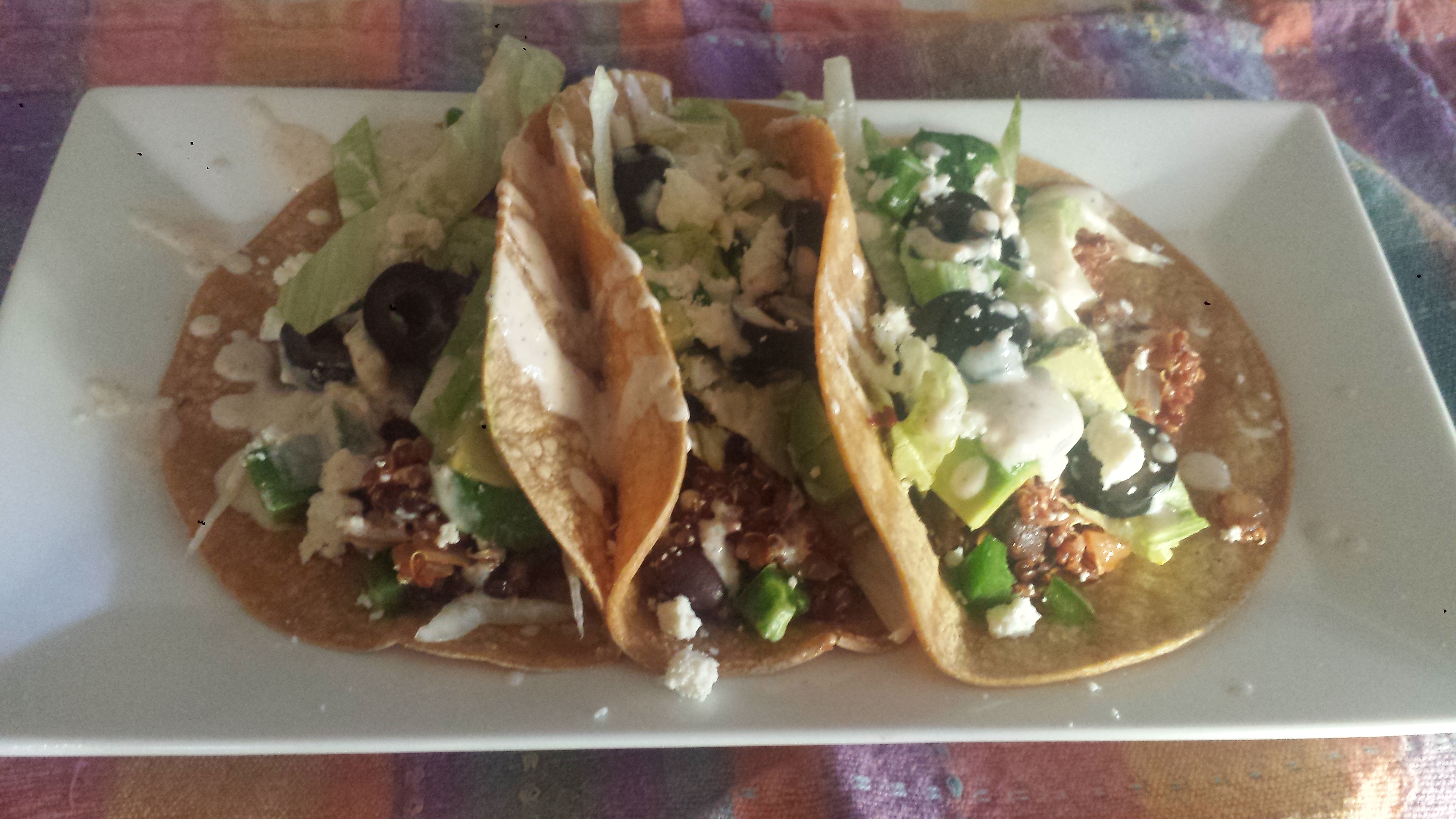 Wheatless Wednesday – Quinoa Black Bean Tacos with Chili Lime Sauce