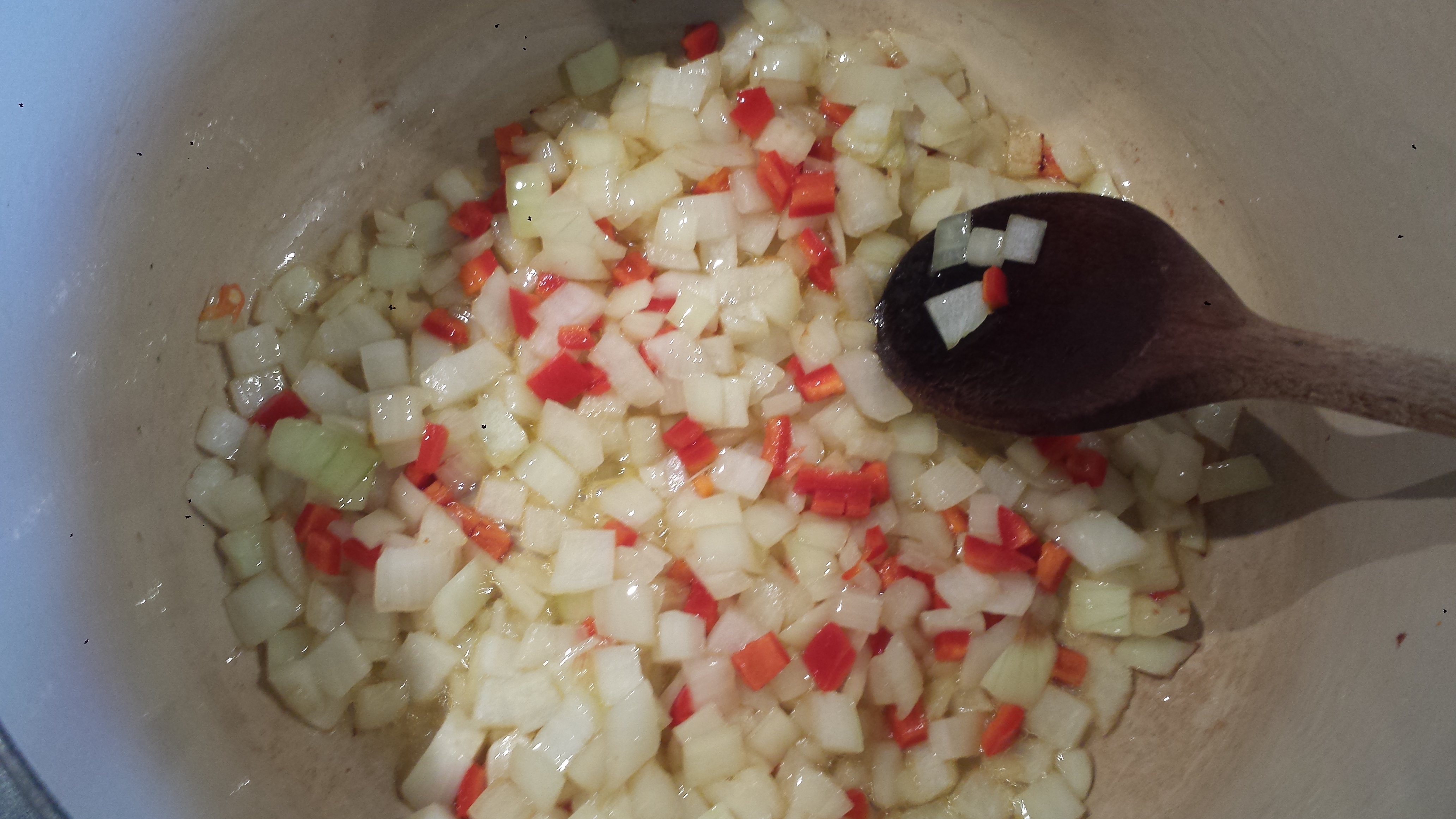 - Heat oil over medium heat in a large pot. Add onion, garlic, celery and carrots. Saute until onion is translucent, 5 to 10 minutes.
