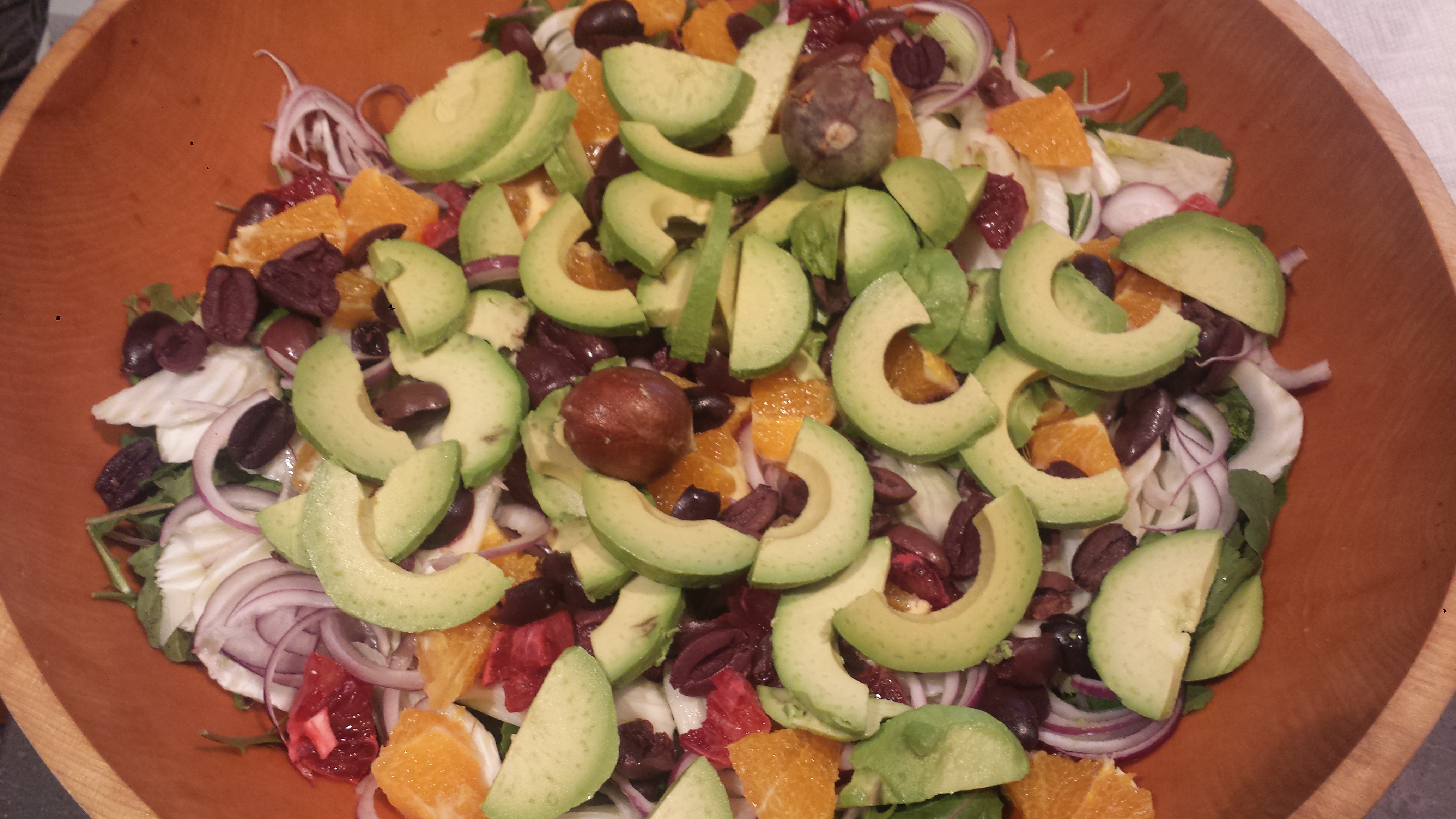 - Halve avocado and cut into pieces a similar size to the orange segments.