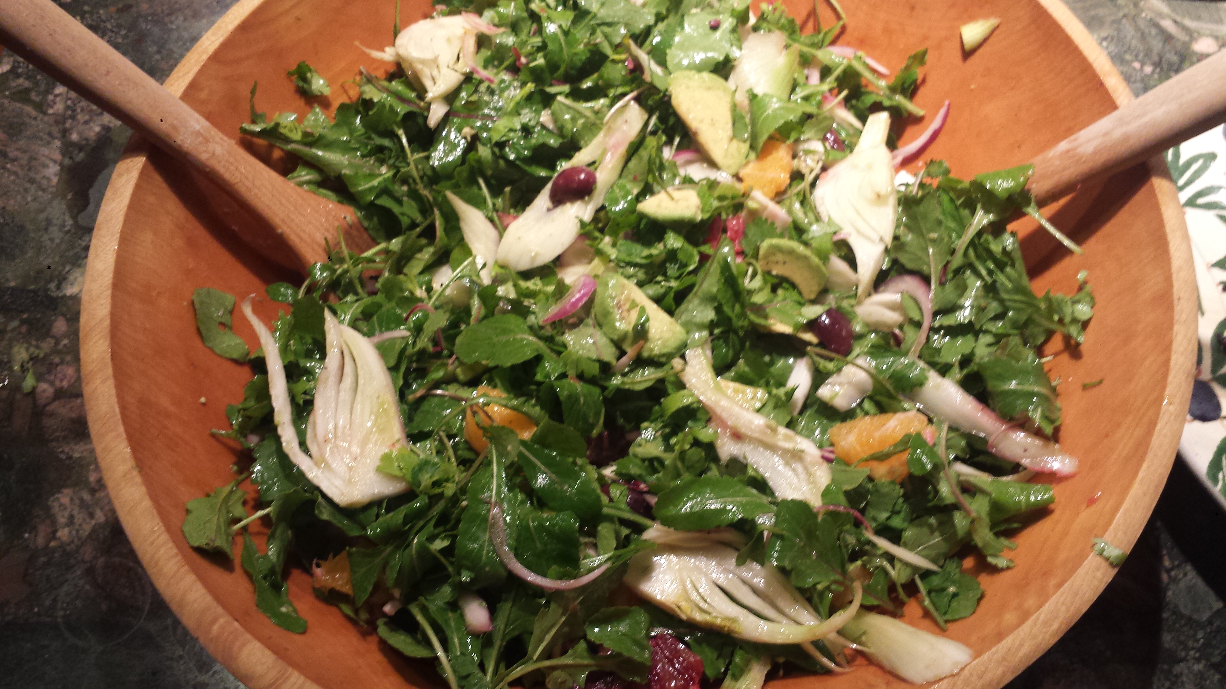 The first time I made this salad was when I was getting weekly CSA boxes and my endive came with an informational blurb which I found quite interesting. Endive is a member of the chicory family (which makes me think of coffee for some reason). Belgian endive is grown from chicory roots in a dark environment, which is why their tender leaves are such a light color. I was enthralled, so I googled, and here is what endive looks like growing. At first glance I thought I was looking at a photo of a factory chicken farm! You can click on the photo link for the full story on endive.