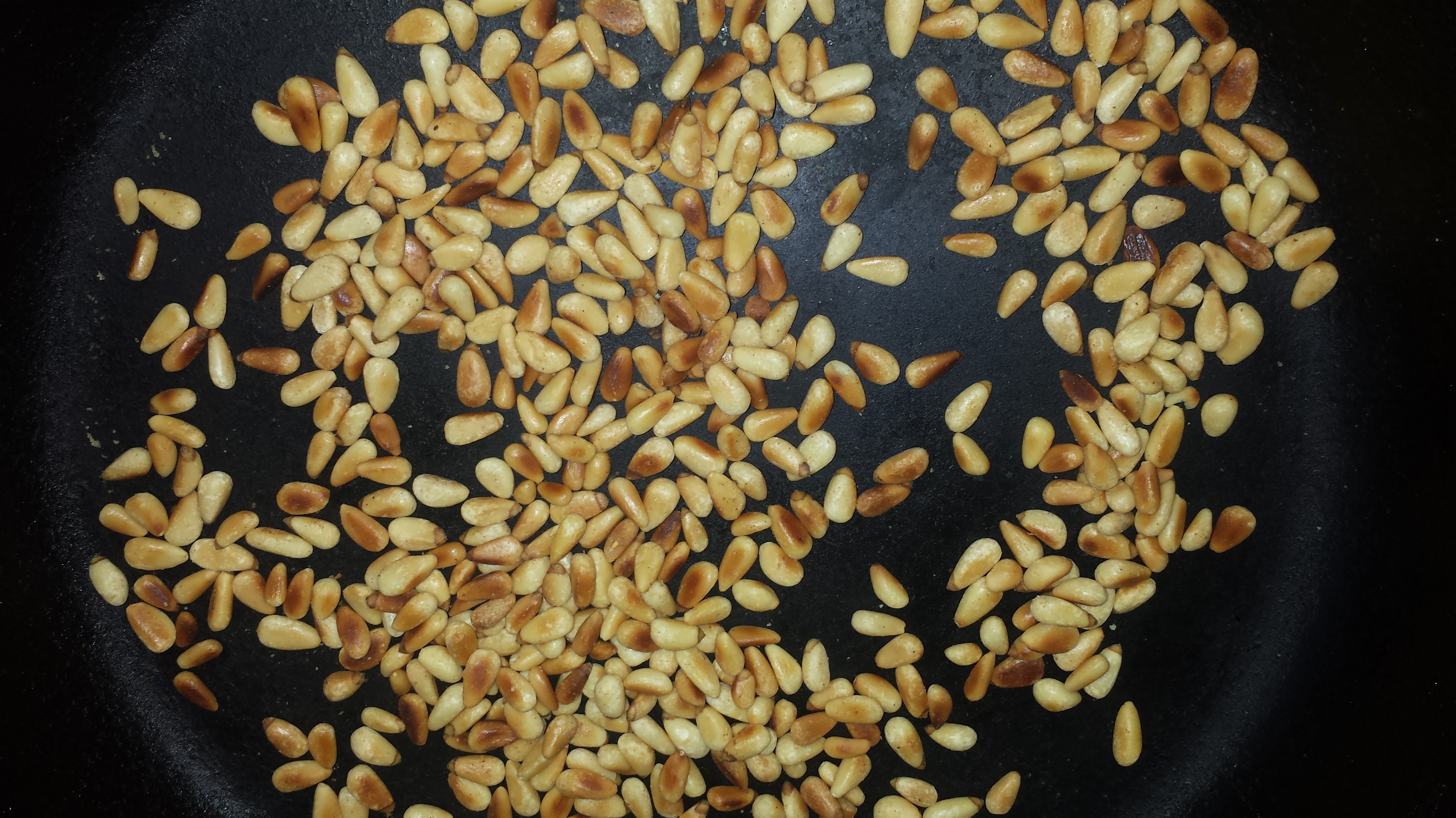 - In the mushroom skillet, heat 1 Tablespoon olive oil and half of garlic, lightly saute spinach. Just cook until wilted and liquid releases. If you decided to use frozen spinach, squeeze out as much water as possible. Remove from heat and let cool