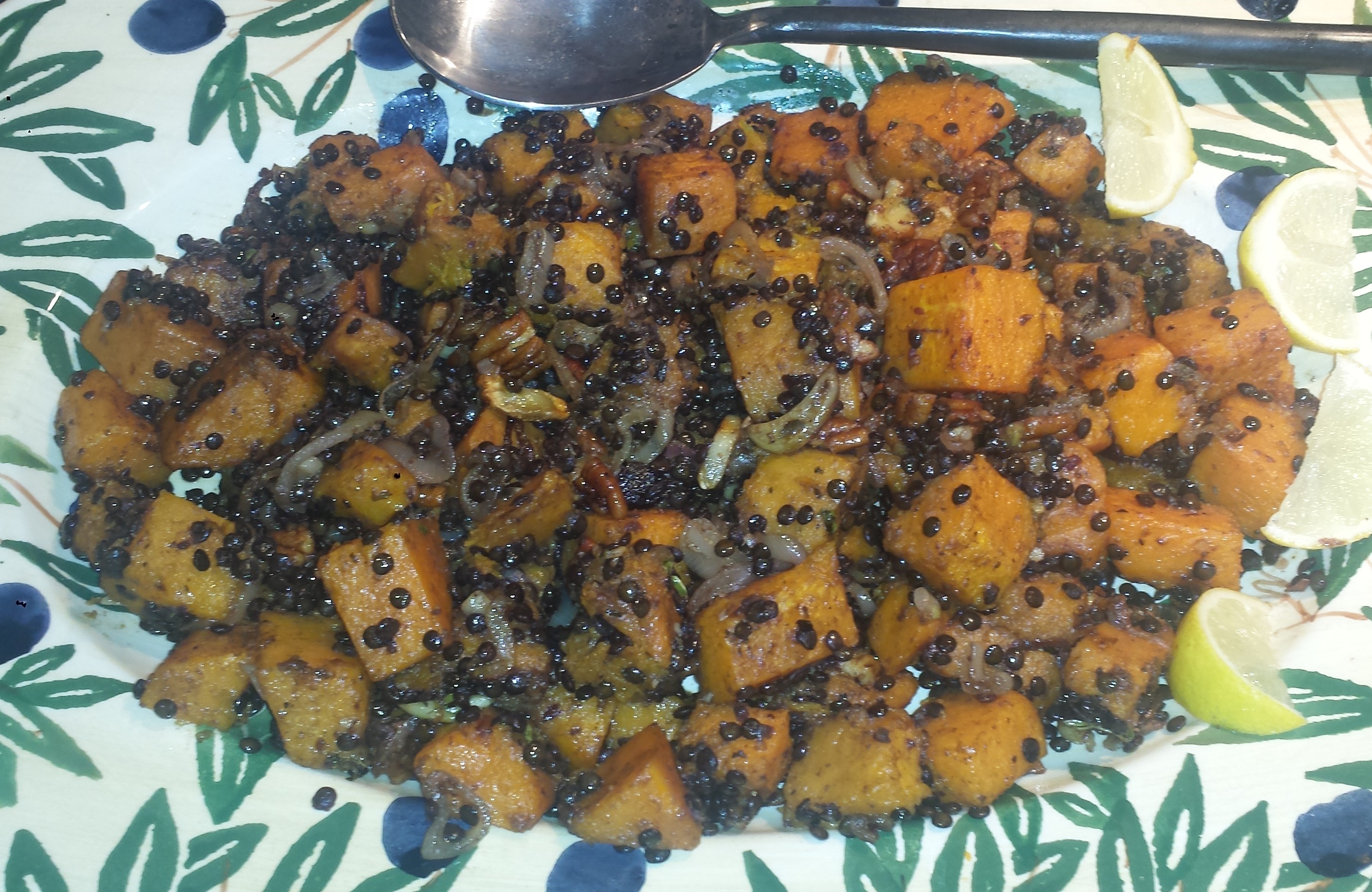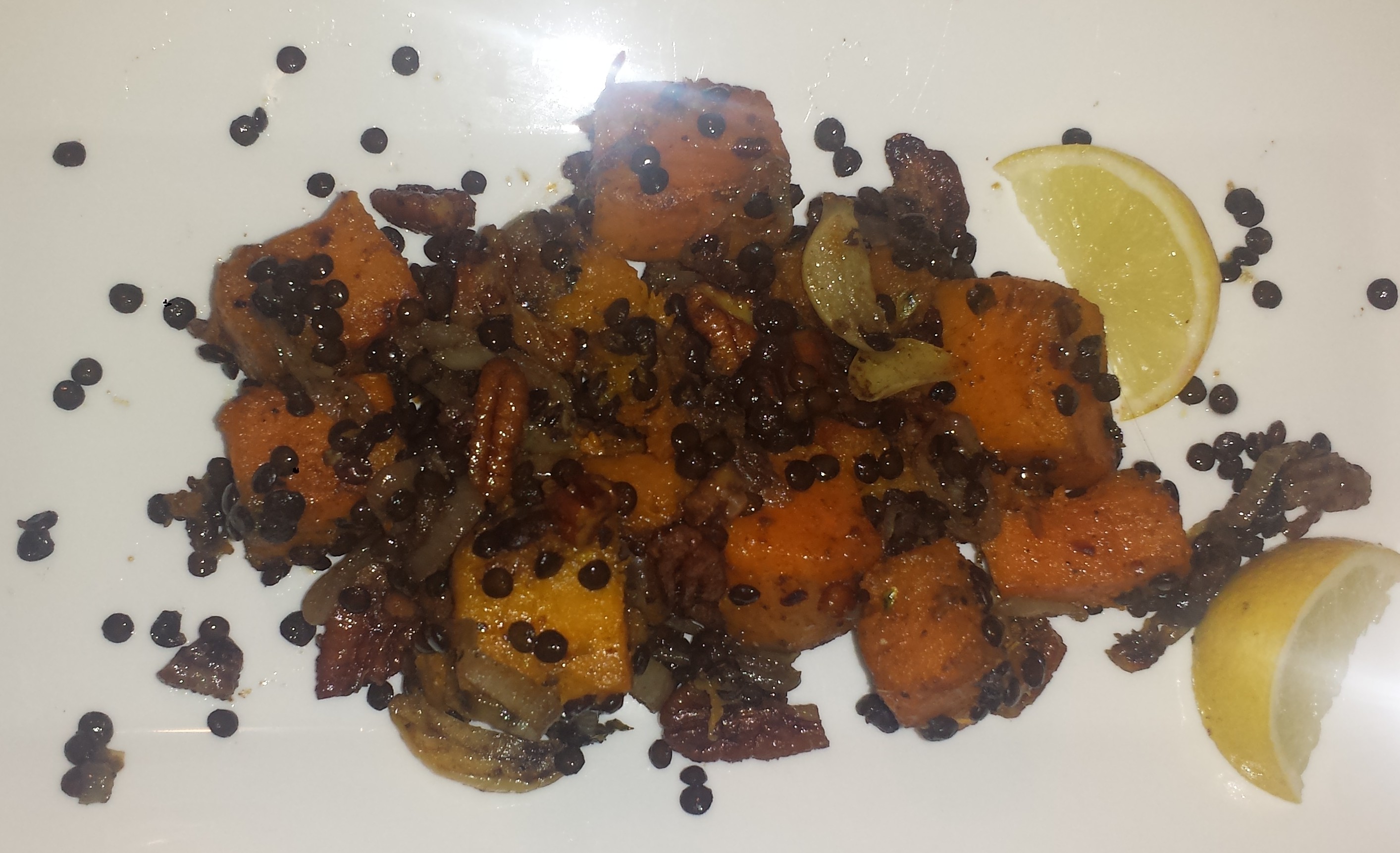 I chose black lentils, also called Beluga lentils due to their resemblance of black caviar, because I find them the richest in flavor and their texture remains firm when cooked. However, brown or green lentils would work well here too. They are also quite healthy. 100 grams of cooked lentils contains 116 calories, 9.02 g of protein, .3 g of fat and 9.02 g of fiber. They are also rich in minerals and vitamins. Click for MORE info.