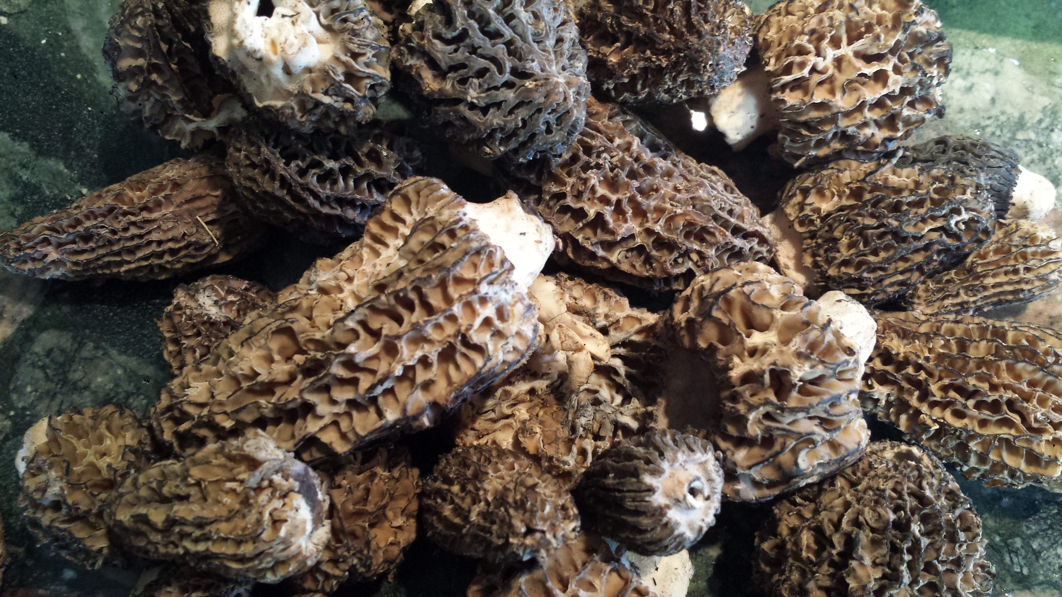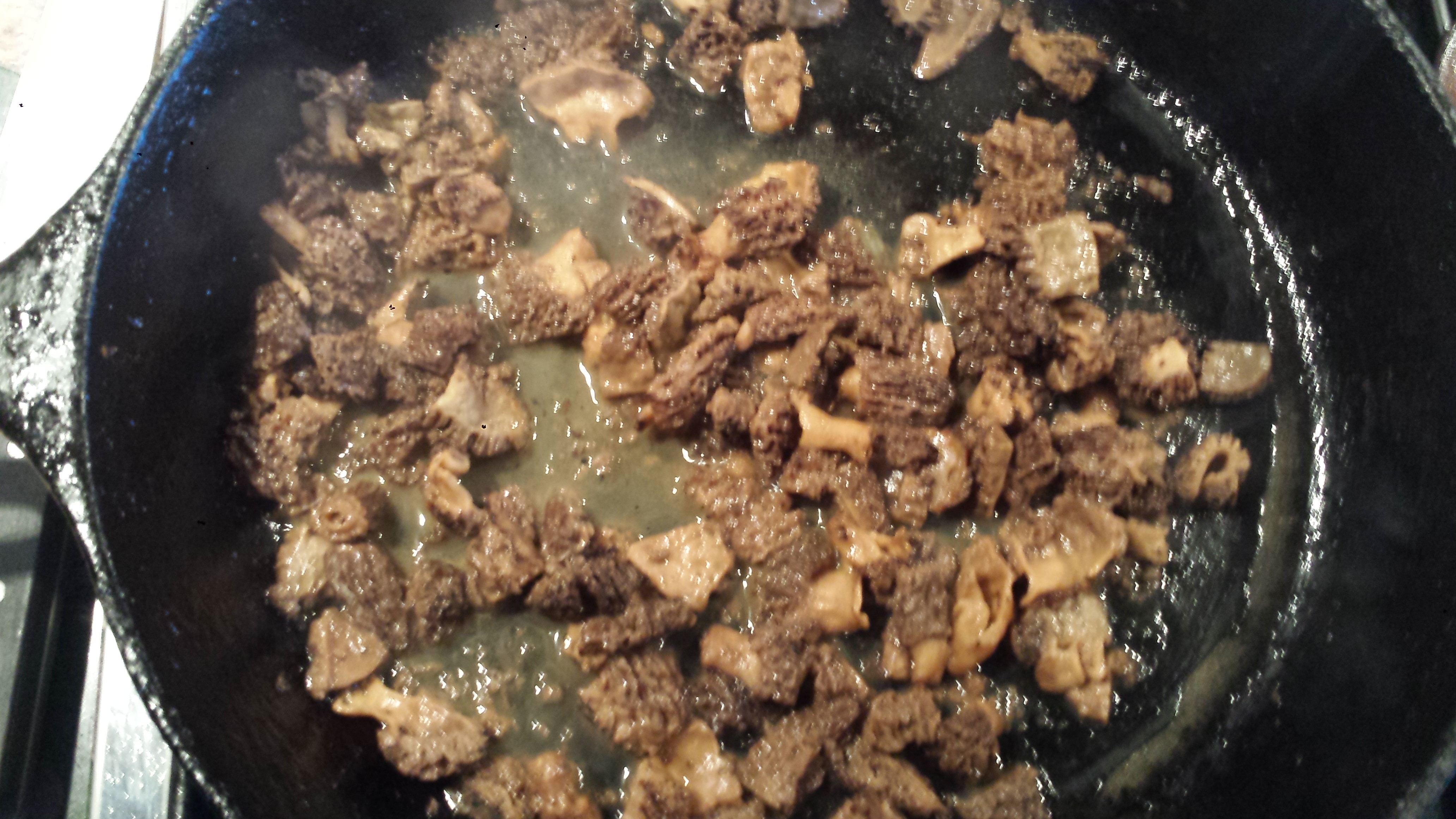 Morel mushrooms are usually found in moist areas, around dying or dead Elm trees, Sycamore and Ash trees, old apple orchards and sometimes in our own back yards. After hitting ‘Google University’, of which I am a full time student since starting this blog, I have discovered that morels are a favorite for ‘shroomers’, avid mushroom hunters who take to the woods in spring in search of tasty morels. Apparently people who like to hunt mushrooms are colorful individuals who like to tell tall tales, as I also learned about “SWATS” (Scientific Wild Ass Theories) on how, where, and when to find them which apparently differ from shroomer to shroomer. I personally don’t ‘hunt’ mushrooms even though I have many that pop up in my garden because I don’t trust my ability to identify, and mistakes can have serious consequences. I’m quite happy to get them safely identified with my weekly produce, however, the brave and hearty can learn more about morel mushroom hunting along with a dose of humor from The Great Morel.