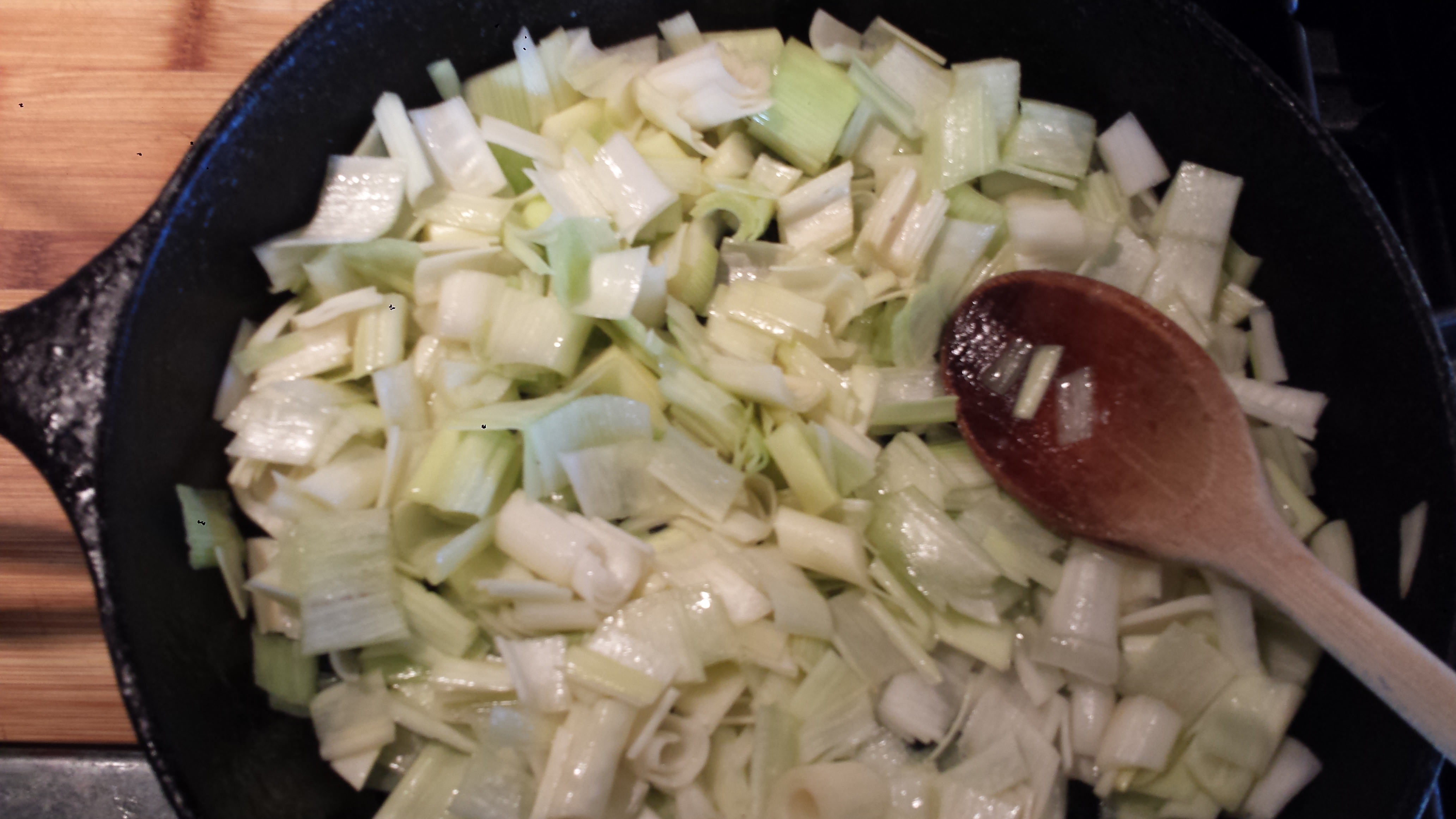 - Saute the leeks in 2 Tbsn butter in a skillet until very soft. Cover and add 1/4 cup water to make sure they get soft enough.