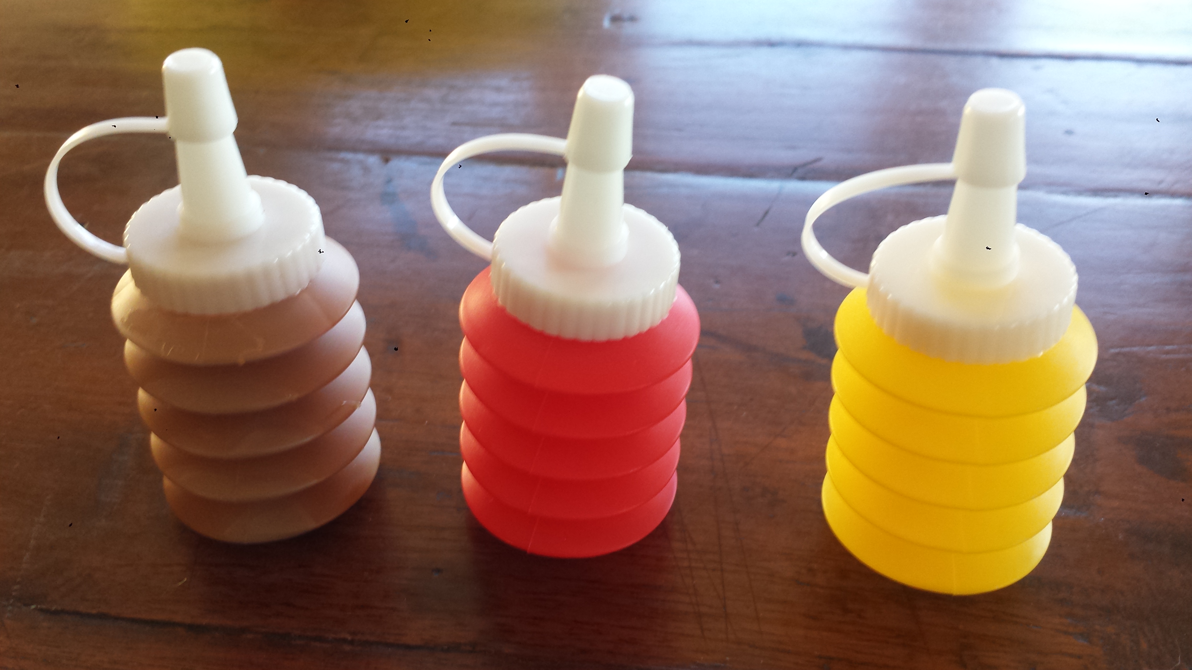 TIPS: Caramel Sauce can be made ahead of time and stored in the refrigerator for a couple of weeks. For easy drizzling, try these little plastic squeeze bottles I found at World Market for $1.99 for the three bottles. They are the perfect size for drizzling sauce, dressing or toppings on pretty much anything. I have filled the white one on the far left with caramel sauce which made drizzling a breeze instead of a goopy mess.