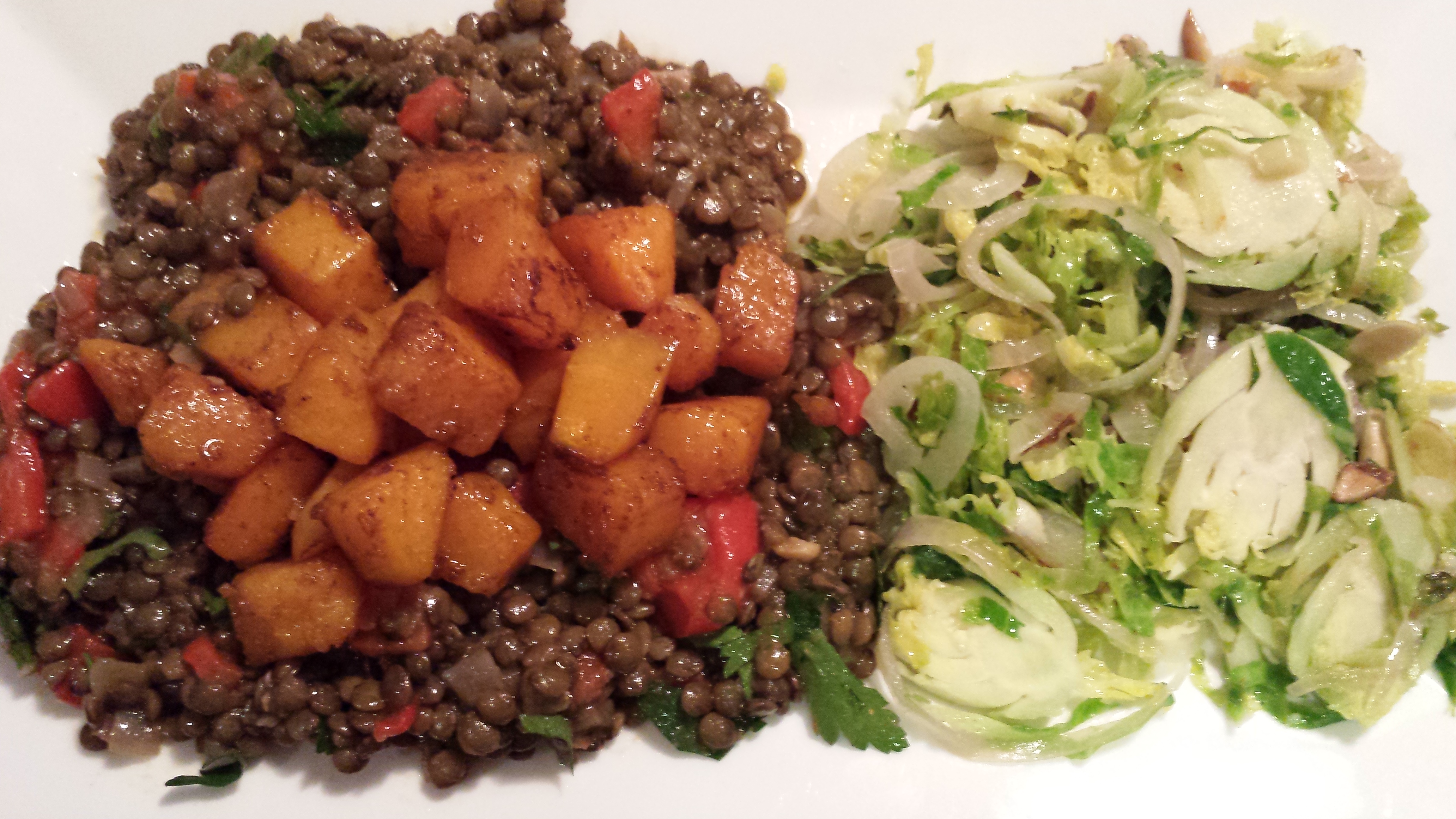 I love Autumn salads which are a bit heartier than those we enjoy in summer. With the advent of chilly evenings, we need more tummy-filling ingredients to keep us warm and satisfied. It also helps that bikinis are soon to become a distant memory (unless you’re going on a tropical vacation). I really like adding either grains or legumes to salads, especially if they are the main course and French green lentils are a favorite. In creating this salad, I started with a bed of frisee which adds texture and interest, then a layer of French green lentils, tomatoes and oranges topped with warm seared scallops. A final drizzle of mustard vinaigrette completes the dish. To make this dish vegan, substitute sliced hearts of palm instead of scallops. I don’t know how hearts of palm are when seared, so would recommend using them raw unless you are up for a challenge. It could be worth a try, though. They sure worked well as a meat alternative in my Pulled ‘Pork’ Sliders. I may have to try…