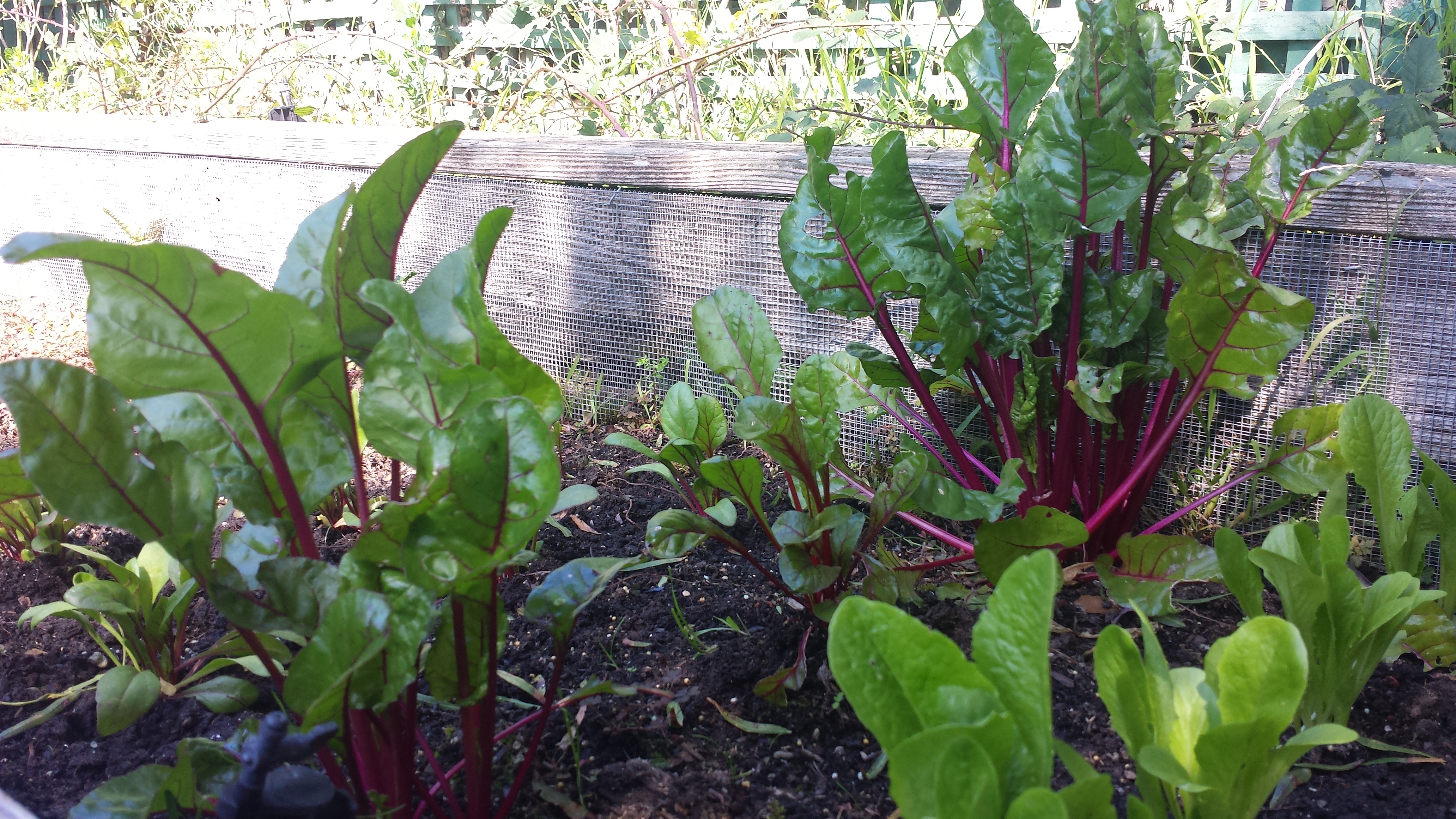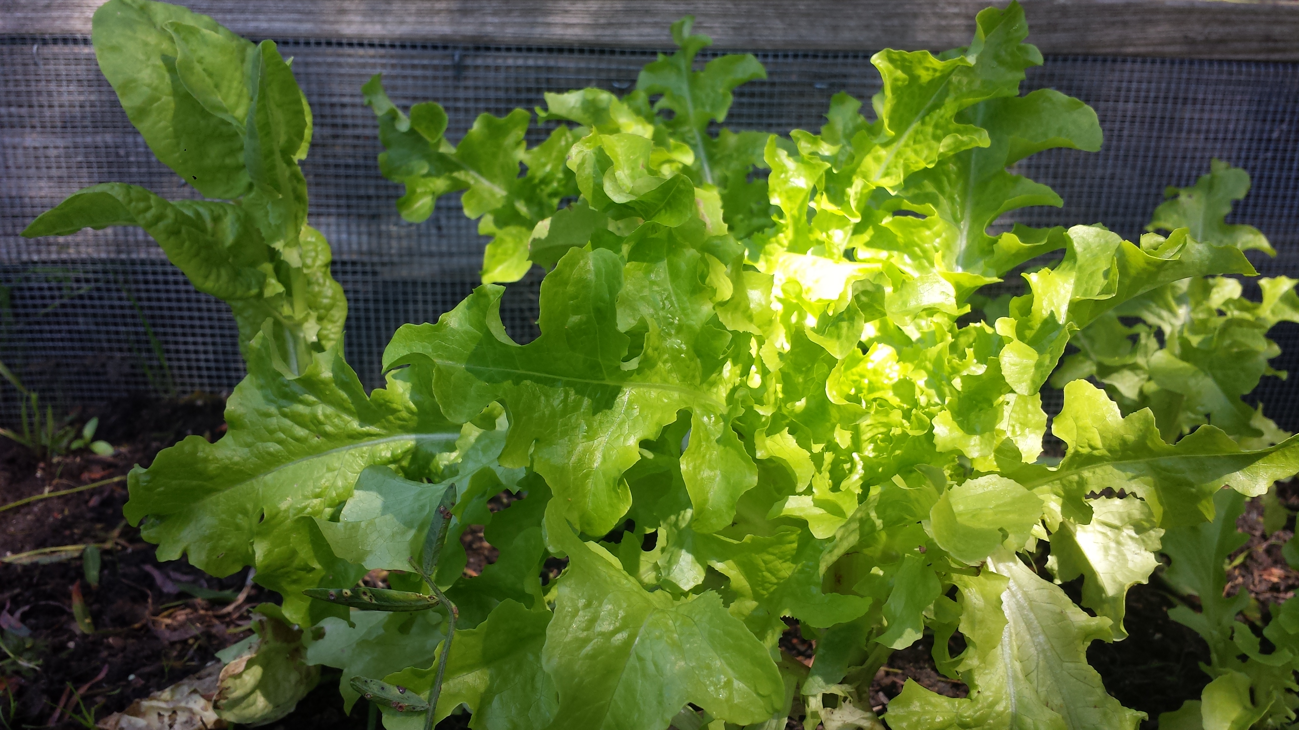 Since I planted back in April, I have been harvesting a steady crop of lettuces. There are a few ways to harvest lettuce (and kale and chards). You can cut the entire plant off at the base, remove the roots and replant. Sometimes, a plant will regrow if you leave a few inches but I’m often too impatient to wait. You can also just pull up the whole plant by the roots. Or you can remove just the outer leaves and allow the plant to keep growing, which it does from the center (so don’t remove those leaves). Eventually though, it will bolt (flower or go to seed) and you then need to harvest or cut back the whole plant. I started my lettuces out in nice rows but by now it’s quite the hodgepodge, since I replant as I go, but I think it looks pretty that way. I always have seedlings and mature plants going along together so something is always ready for my salad bowl .
